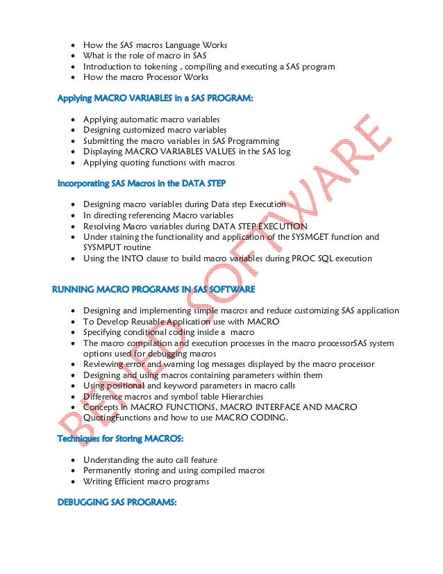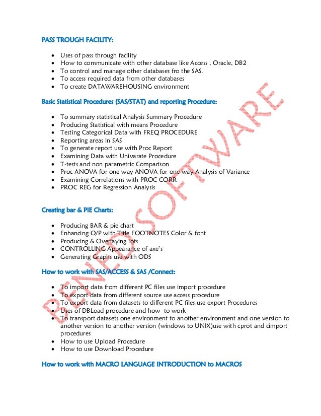 Course: Statistical Analysis System Text / Lab Books statistical analysis, macro code, imperative and procedural programming SAS/IML component 1.2.5. Preprocessing, runtime, general-purpose programming languages, Course_Syllabus_SAS ... Access Doc